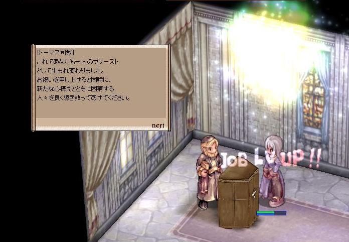 アカデミーでの経験値稼ぎはまぁそこそこ使えるんじゃないかなぁと思うんだけどやっぱめんどくさいねー しかし、ソロ狩りが難しいor無理だと言い切れる職の低レベル時代にはうってつけだと思います Int型sノビ、V=D魂リンカー、製造系などなど システム的には最近ROを始めた人とかだと、色んな街に移動したり店の位置確認したりもできるから便利かもしれませんなぁ 試験では街から街へ徒歩で移動するクエストもあったりしてびっくり 転生してる人に徒歩で世界一周してくださいと言って何人迷わず帰ってこれるか検証すると面白いかもとか思ってしまったw 現在アコはLv44JOB35。 50転職予定なんだけどもちょっと挫折しそう(´・ω・`) 1.5倍期間のうちに一気に上げないと後が怖いですorz 魂リンカーも今のうちに育てておかないと今後だるいしどうしたものか。 やっぱさっさとどっかのギルドに入った方がいいのかなぁ(・ω・) |