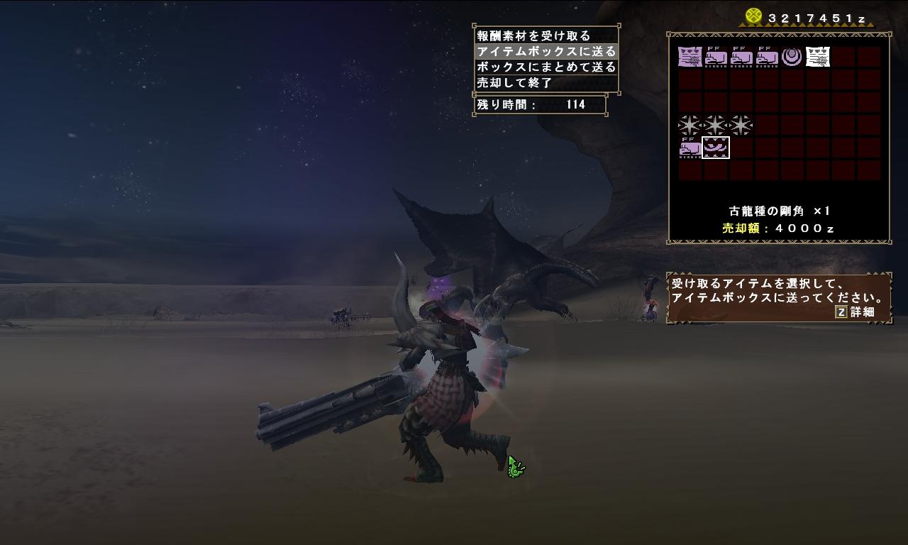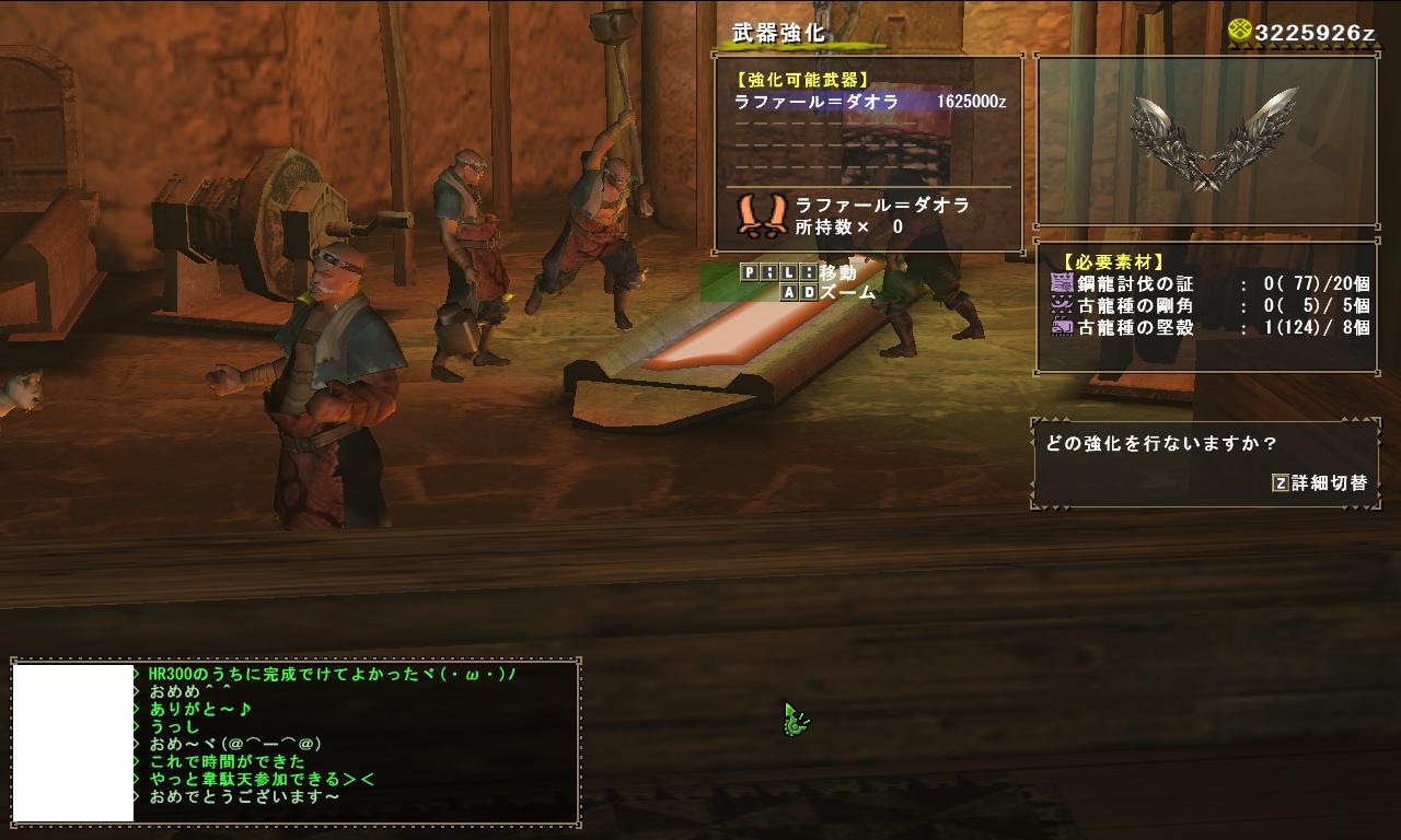 試験内容はディアソロらしいので300になったら、逆ディアにでも挑戦してみようかと思います。 って、1日で10個も上がっちゃったのか・・・ 今日は剛クシャ24戦と剛テオ4戦?くらいして剛チケを32枚消費してしまいました。 所持素材メモ 靭尾4 剛角4 剛翼5 剛爪6 剛尾6 特上毛5 テオ証11 クシャ証32 特濃血0・・・・・(´・ω・`) 残り剛チケ0・・・・・・・・(´・ω・`) 靭尾が後1個出ればシスネ1は作れそうです ただし今週は砦のはずなので1週間後になりそうなので、さすがにその頃には確実に1個出ていると思われます。 余った素材を何に使うか・・・何に使えるかというのをよく調べた方がいいかもしれないなぁ・・・ とーりあーえず、明日は剛チケ集めをしなければならないのですが、どれもお勧めされないようなクエばかりでして、どうしたらいいものか考えさせられます(´・ω・`) |