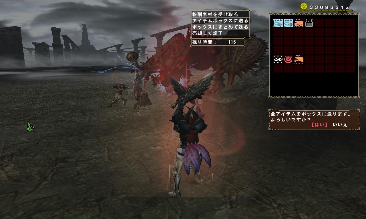 今ここ↑ 今日は10回弱できたんだけどまぁお察し。 靭尾2個も出てるのになぜ剛角は1個もでないんだよwwwwという話なんだけど、なーんか気がついた 尻尾切れるのに角折れてなくね・・・? 巣に戻って寝た後のやつはカウントしないのは知ってるからいいんだけど、巣にいくまでに破壊できてないってどういうこと?ww こちとら剛角出すのに必死に剛チケ集めて頑張っているというのになぜこうなるのか・・・ 原因 1、双の火力が低い、切れ味+1剛力スキルがついていない 2、笛の火力が低い、マドロミを使っている人のときは高確率で折れていない気がする 3、ヘビーが調子乗って撃ちすぎてすぐ死ぬ。 4、装備の質がヘビー>>>>>笛>双なきがしてならない 一応私が普段ガンやってるんだけども、頭狙って結構当たってるんだけどなぁと思ってるんだ(´・ω・`) ガンで角折れない・・・のかな・・・? WIKIには特別書いて無いので大丈夫かなーと思ってるんだけど、前衛が火力不足だなーと思った時は頭狙いで破壊の手伝いしてるつもりなのですがどうなんだろうねぇ~・・・ そうそう、ガンナーの死亡率はもちろん本人の腕に大きく左右されるんだけども、閃光を調合分もって来て無い前衛、または投げるのが下手な前衛の場合、ガンナーが死にやすい状況が非常に増えるので気をつけて欲しいなーと思いました。 ほんと定番PTとはよくいったものだ・・・あの構成が丁度いいバランスで成り立っているがために・・・・ 1人でも下手な人がいるとバランスが保てないんだもの(´・ω・`) 1人のミスが2人目のミスを誘い3乙するというパターンがありそうで怖い罠 今のところ50戦以上は剛クシャいってるとおもうんだけど、3乙経験は自他ともにありません。 2死は1%以下の確率であったような気はします・・・というか今日あったんだっけか(´・ω・`) 上の愚痴にあるとおり閃光が下手で弾数稼いでいる私が一番狙われやすくなっているらしく、最近かなりの確率で攻撃対象に選ばれている気がします。 まぁおかげさまで大分慣れたけどね(・ω・) 次にクシャが何をするかを予想して一番安全性が高い道を歩き射程距離を把握しつつ攻撃し続ける 遠くからでも頭を狙えるようになってきたし上達したのかなーと思います。 まぁ肉質無視の毒麻痺弾なので部位破壊目当てじゃない限り水平うちでいいんだけどね!w さて明日もランスの練習をかねた剛チケナスにいってきまーーーーすヾ(・ω・)ノ |