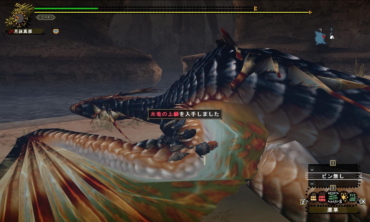 昨日は、新団員がいっぱいきたので少し一緒に狩りしてますた 団クエちょろっとと、30試験のお手伝い( ゚д゚) その後、紫クエが着ていたので3回ほど?行ってみました 正直簡単です。 ちゃんと対策をしていれば・・・ですが・・・ 紫クエ達成条件 ①フルフル原種2頭討伐、ゲリョス原種2頭討伐、ランゴスタ4匹塔討伐 ②フルフル原種1頭討伐、ゲリョス原種2頭討伐、ゲネポス5匹討伐? ③???? 使用武器のレア度3以下と使用防具のレア度4以下、所持品無所持(弾薬&瓶も) 今回見つけたのは2番目のですにゃ 毎回一緒だったのでもしかしたら同じのしかでないとか・・・? 難易度的には2番が楽だと思いましたが。 紫謎クエのクリアの仕方と下準備 1、PT編成 支給品に応急薬がなく、回復弾が大量に入っているため、ライトボウガンを2にしたくなるところです。 が、ガンが2人にになってしまうと回復役としての役目を忘れがちになってしまうので1人に任せる方が都合がいいです 近接側も誰に回復してもらうのかが明確になるため回復して欲しい時に、うまく立ち止まりやすいと思います。 あと、近接がしっかりした人であれば1で十分です。 不安ならうまい人に最初はガンをやってもらいましょう。 他3名は、切断系がお勧め。ハンマーは気絶させにくい相手なので麻痺武器で無い限り活躍しにくいと思われます。 2、装備 クエスト受注&参加条件が、使用武器のレア度3以下と使用防具のレア度4以下となっていますので この条件にあった装備を作成する必要があります 調整はMHSXでシミュると結構簡単にできますが、上級珠を一部使うことになると思います 推奨スキル 近接 攻撃力大、見切り+3、雷耐性、気絶耐性、高級耳栓 ライトボウガン 雷耐性、気絶耐性、高級耳栓、反動軽減、毒無効 理由はといいますと 近接 攻撃力を上げるのは当然として ゲリョスは大して攻撃力が無いので気にしないでいいのですが、フルフルは多少攻撃力があり、電撃による範囲攻撃があるため、ゲリョス&フルフルとの乱戦になった場合 後方からの電撃による即死、または瀕死に陥りやすいため、雷耐性はできるだけ高い方がいいです 気絶、高級耳栓は隙を無くすため、これもまた乱戦時の保険になります。 ライトボウガン 雷耐性、気絶、耳栓については上記と同様。 反動軽減は、回復弾Lv2を使用した場合、状態異常弾と同じレベルの反動を受けるため(ガンの種類によるけど)つけておいたほうが安全性が増します 毒無効が実は重要 回復役が自分しかいないため、回復したい場合はベースキャンプにて寝る事しかなくなってしまいます もしHPが減っていた時に毒状態になったらぞっとする事でしょう。 少しでも安全性を確保したい場合は毒耐性をつけると安心する事ができます。 単純に毒攻撃を受けなければいいということなのですが、回復弾を撃つときに不意にゲリョスが走ってきたり毒を直接吐いてくると避けられないですからね。 あと両方に言える事ですが、もし洞窟内で長期戦になってしまう事がわかっている場合耐寒スキルもあると便利・・・かもしれません。他のスキルを潰してまで欲しいスキルではないですが・・・w 携帯食料を使いきるまでに普通は終わりますからね。 ちなみに私は20~25分くらいで1クエ終了しますので、1時間で3回、回す事が可能です。 謎クエは時間限定で予告なく出現し、消えるので効率よくクエを回すのは重要になるでしょう。 3、戦い方 コレは他の謎クエと同じように3つ目のマストオーダーをまずクリアして、支給品の確認をしに行きます 捕獲セットがあれば捕獲しなければならない可能性が出てくるはずです。 紫クエの場合1~2クエでは討伐オンリーなので大丈夫ですが3つ目のクエがまだありますので、もし捕獲セットが出た場合、罠の数分の捕獲が義務付けられるはずです。 話がそれた(´・ω・`) 他の謎クエでもいえるかもしれませんが、乱戦はできるだけ避けましょう。 1匹だけ発見し、攻撃していた時に別のモンスターが現れた場合、近接は無視して同じ敵を集中的に攻める もし飛んで逃げた場合は追いかけず、途中からきたやつを攻撃しましょう 逃げた敵はおそらく睡眠をとるためにねぐらに行きますので、放置推奨。 多少回復しますが気にしない。1:4で戦える環境を増やす事が短期間での攻略をする上での近道となります 当然死ぬ危険性も減るので放置推奨という事です。 特にゲリョスの場合隅っこで寝るのでねぐらでフルフルと戦っていても気がつかれにくいので戦いやすいと思います ではもし乱戦時になるとどうすればよいか?というと 1、最優先事項はゲリョスの頭破壊。 気絶耐性は普通は付いていないため、PTメンバーのスキルを確認し、1人でもない場合これが最初の標的となります。 2、先に攻撃していたやつを攻める、瀕死状態となり逃げるように仕向けると良い。 3、逃げた後はまだ残っている方を倒す。できるだけその場で倒せるよう努力しましょう。 4、回復役の重要さをPT全員が認識す